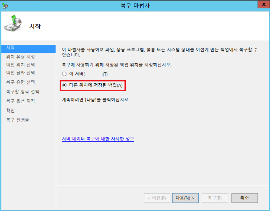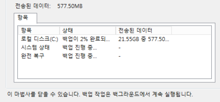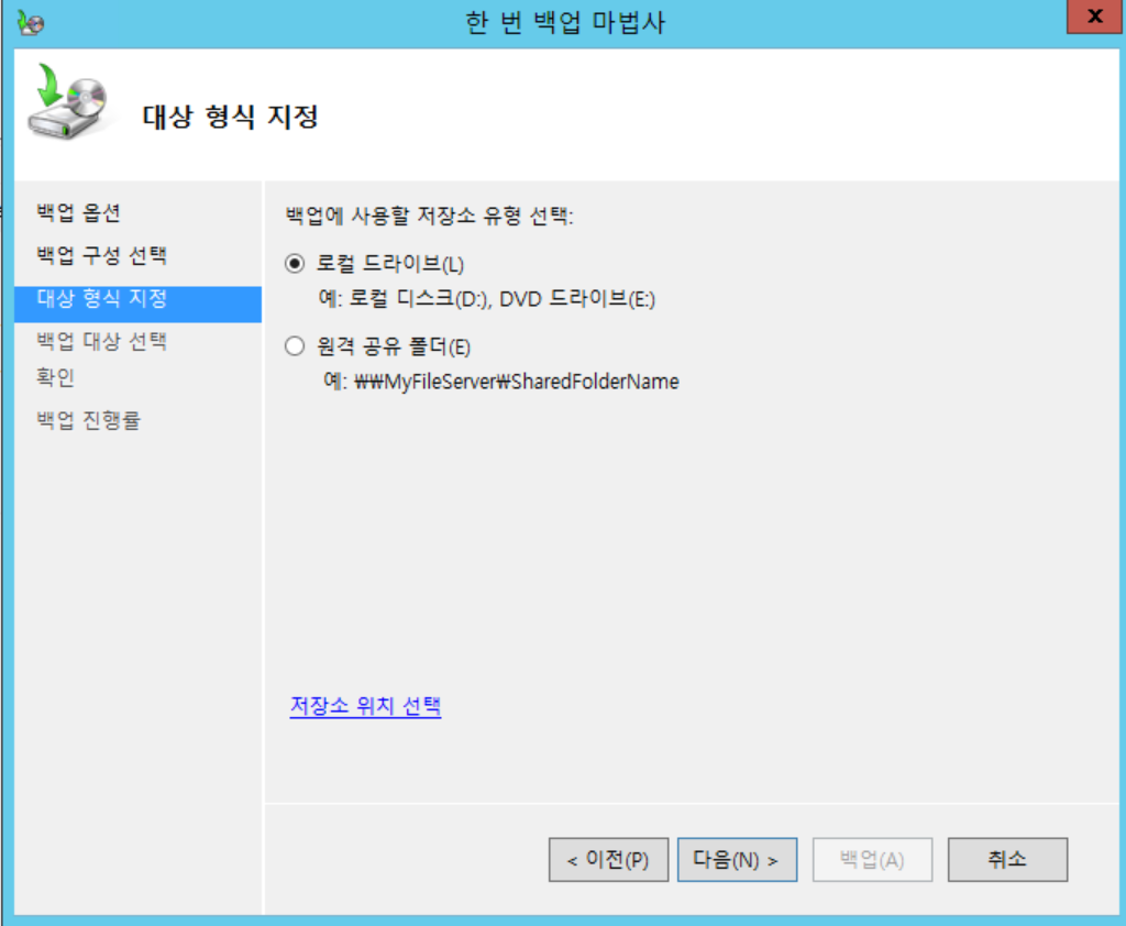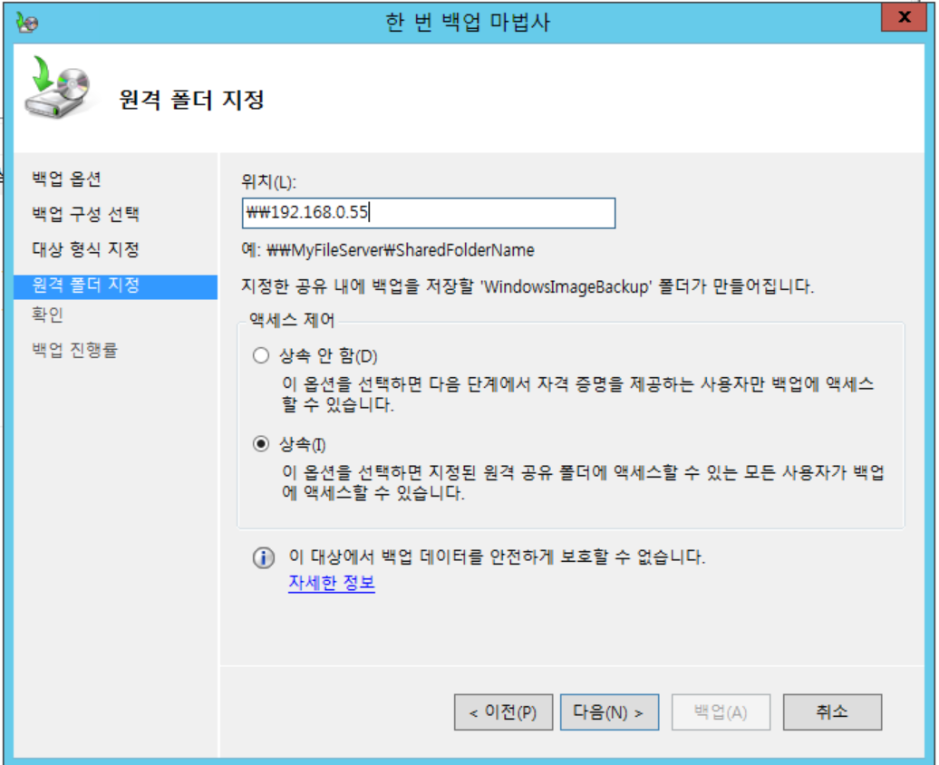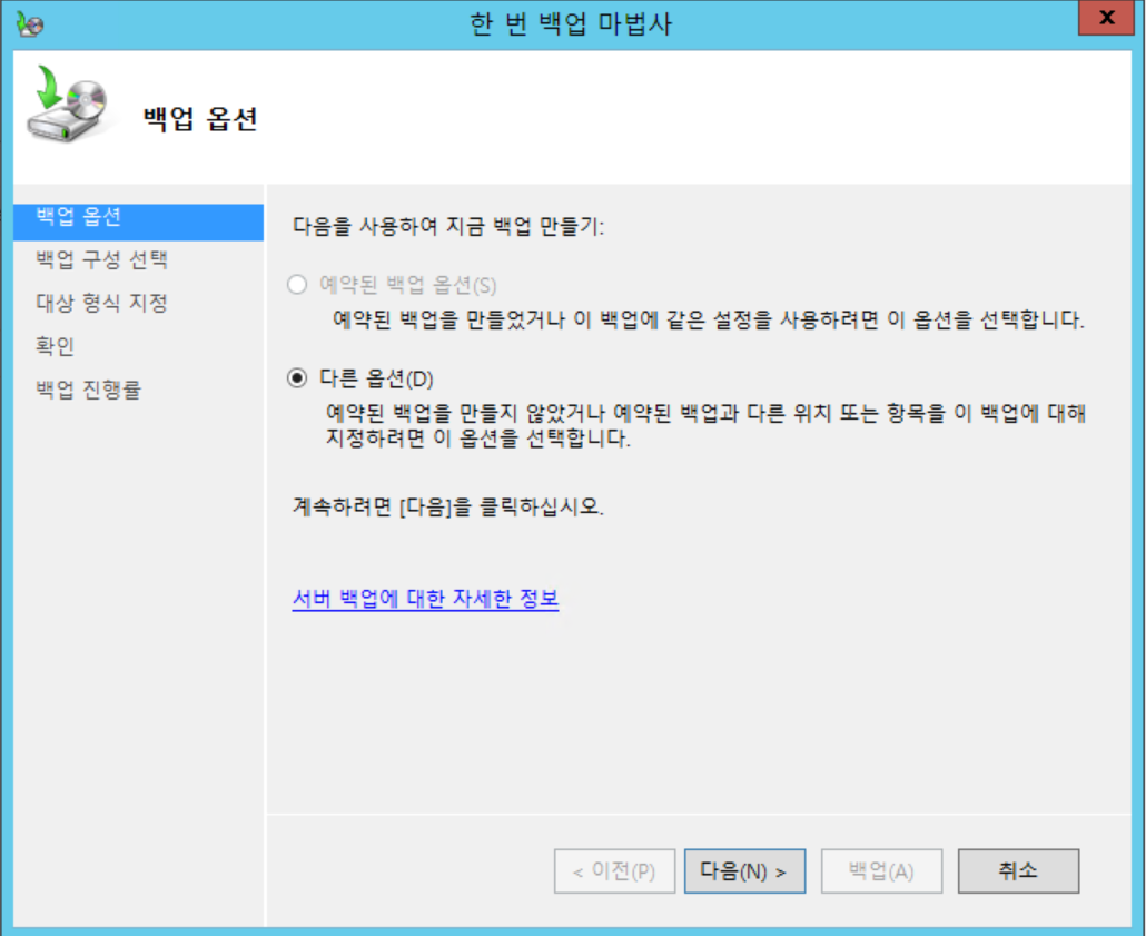 테스트로 하는거니 한번만 백업 눌러보면 위와 같이 뜨는데 다른옵션 선택 후 다음을 눌러보자