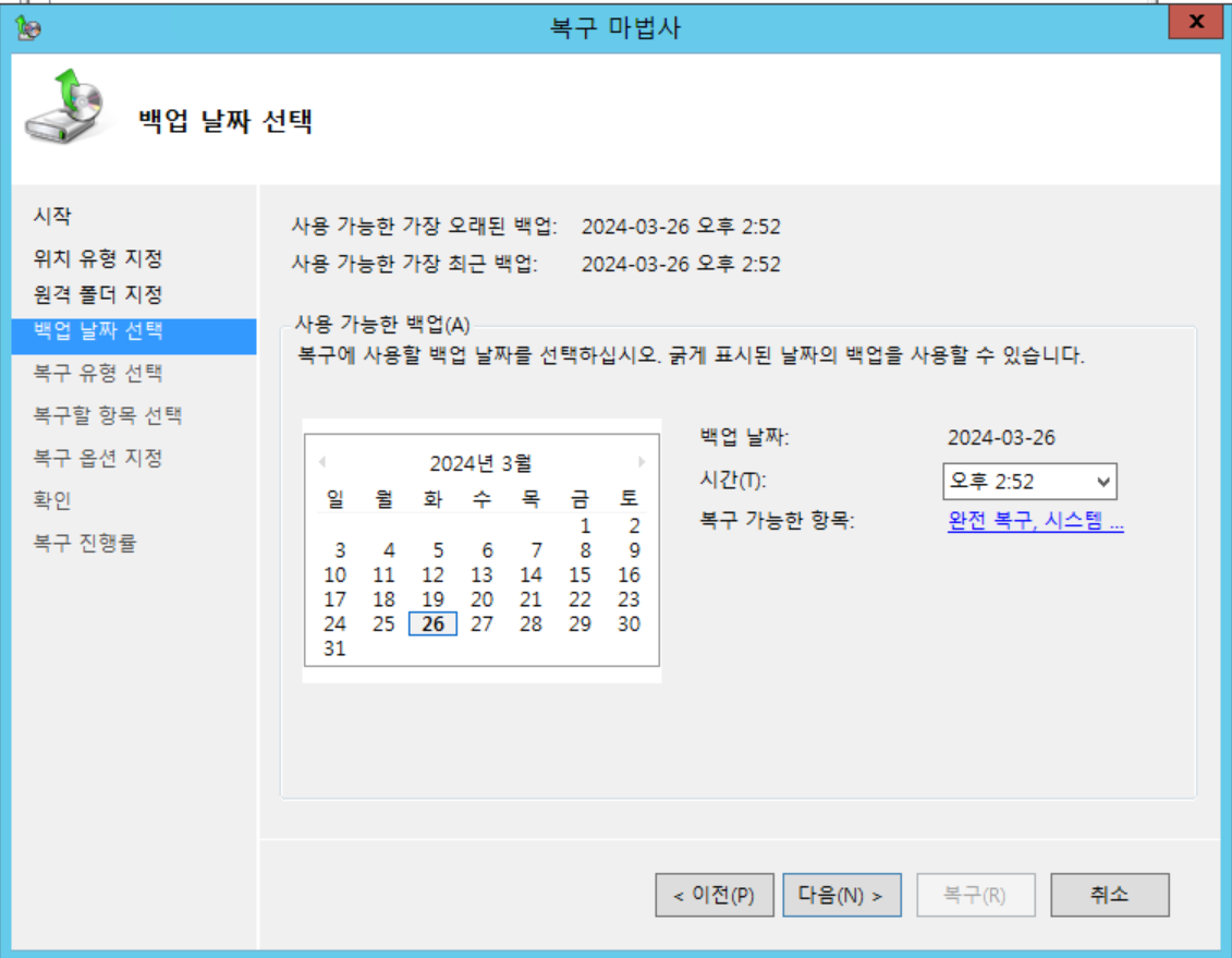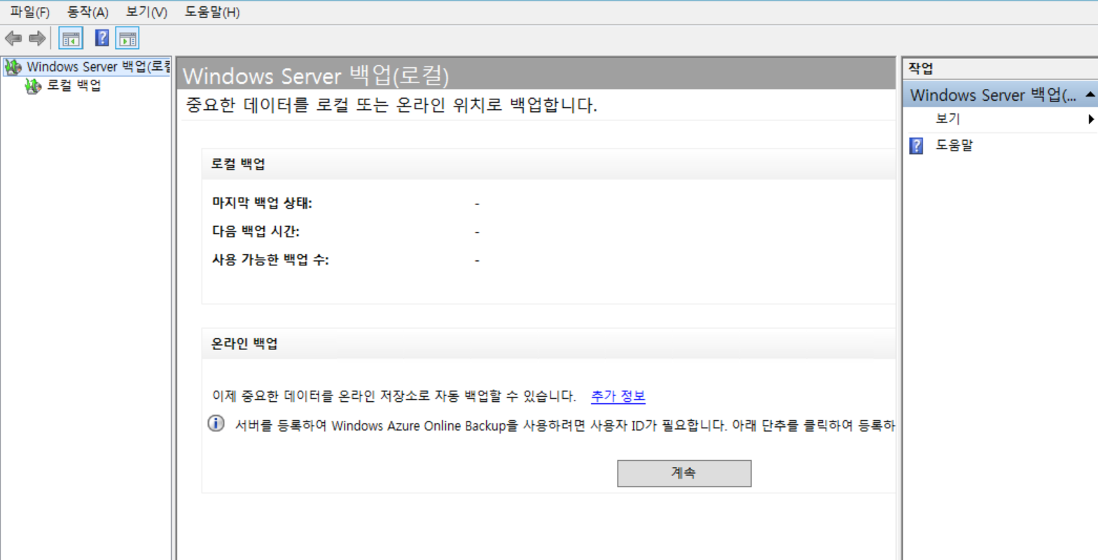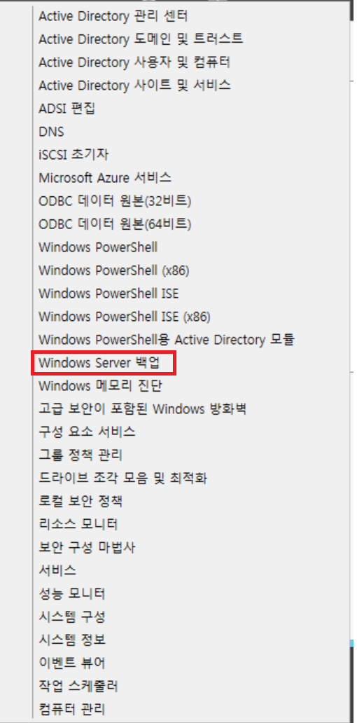 관리 도구에 보면 Windows Server 백업 이라는 항목이 생긴다. 이걸 눌러보면