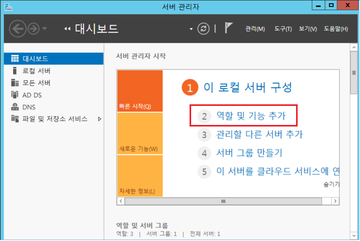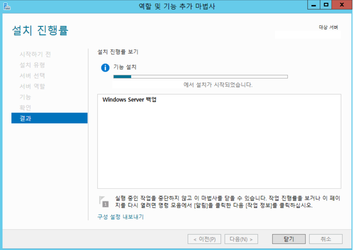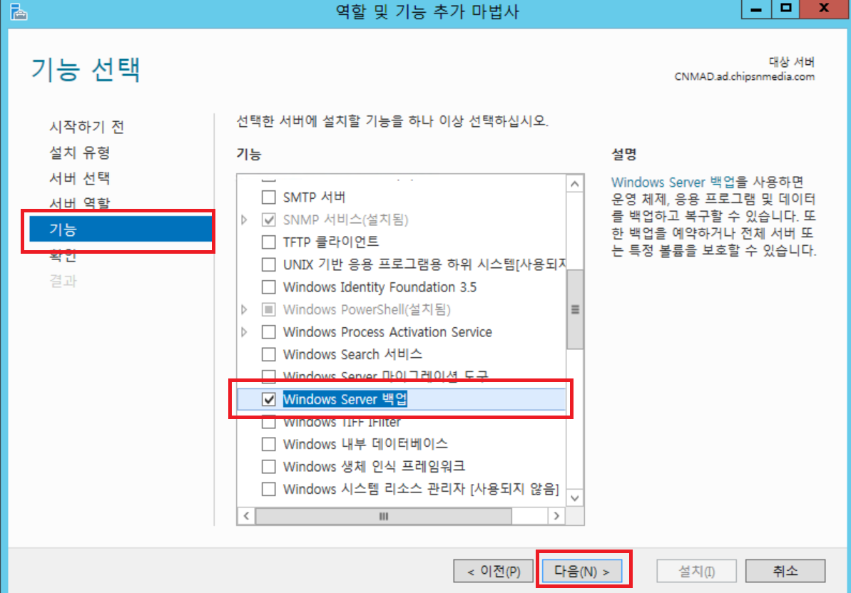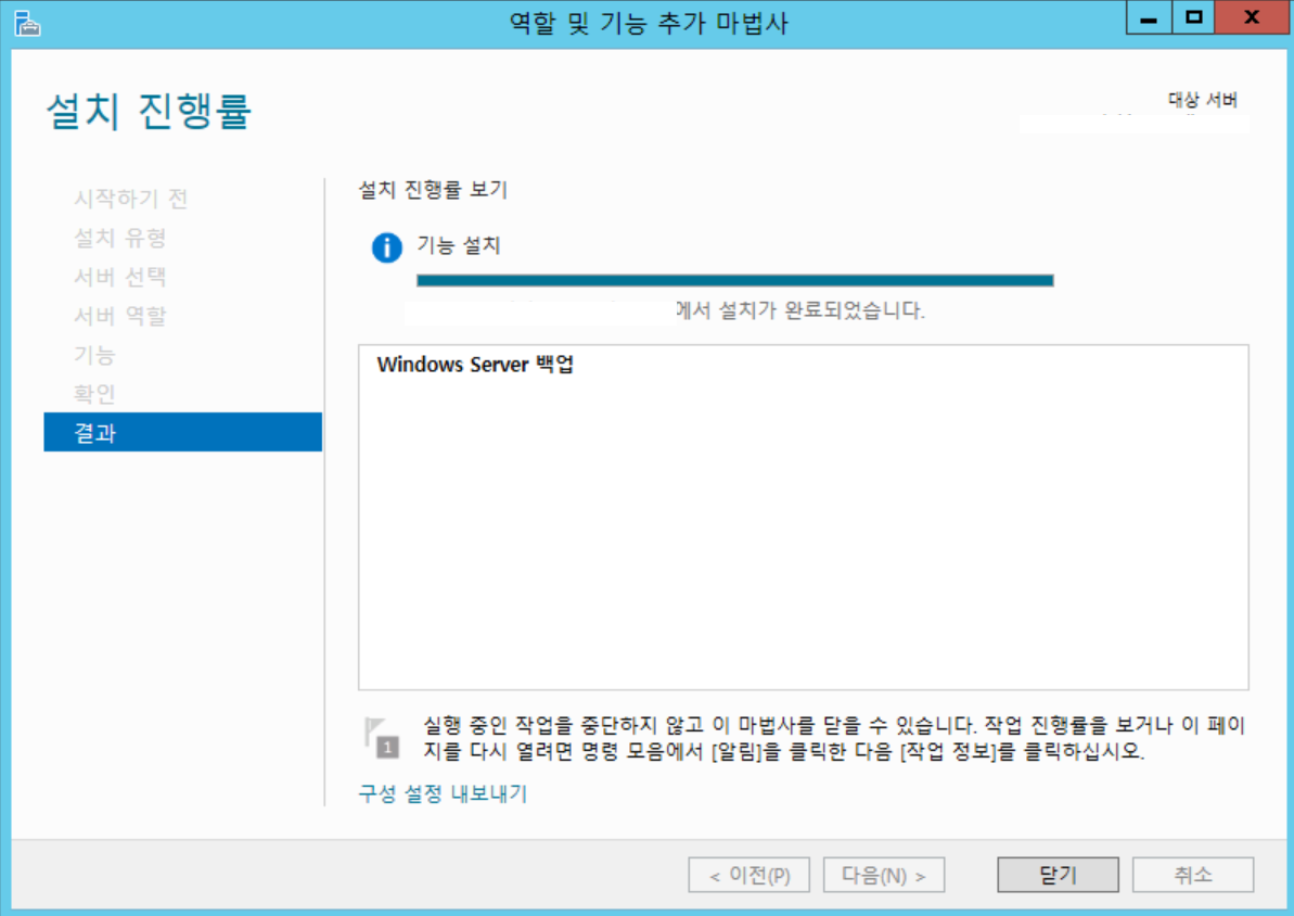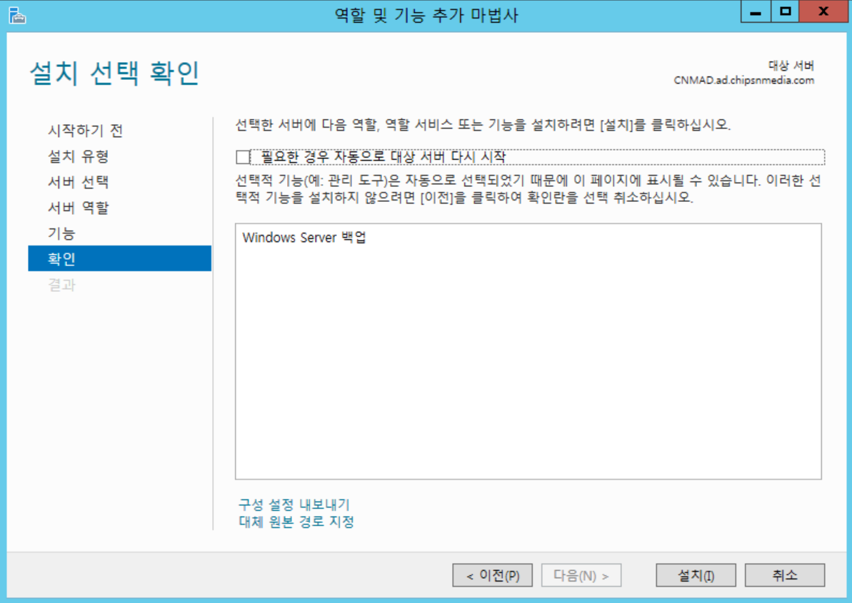 우선 백업을 하려고 하면 Windows Server 에 기본 기능으로 있는 백업 기능을 활성화 해줘야 한다. 역할 및 기능 추가를 눌러서