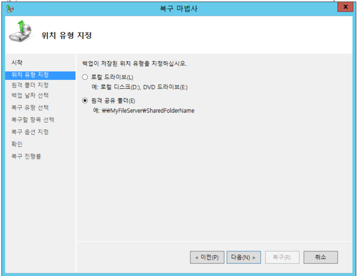 백업을 어느 위치에 할지 지정하면 된다. 로컬과 네트워크(samba) 지원을 하는듯 하다.