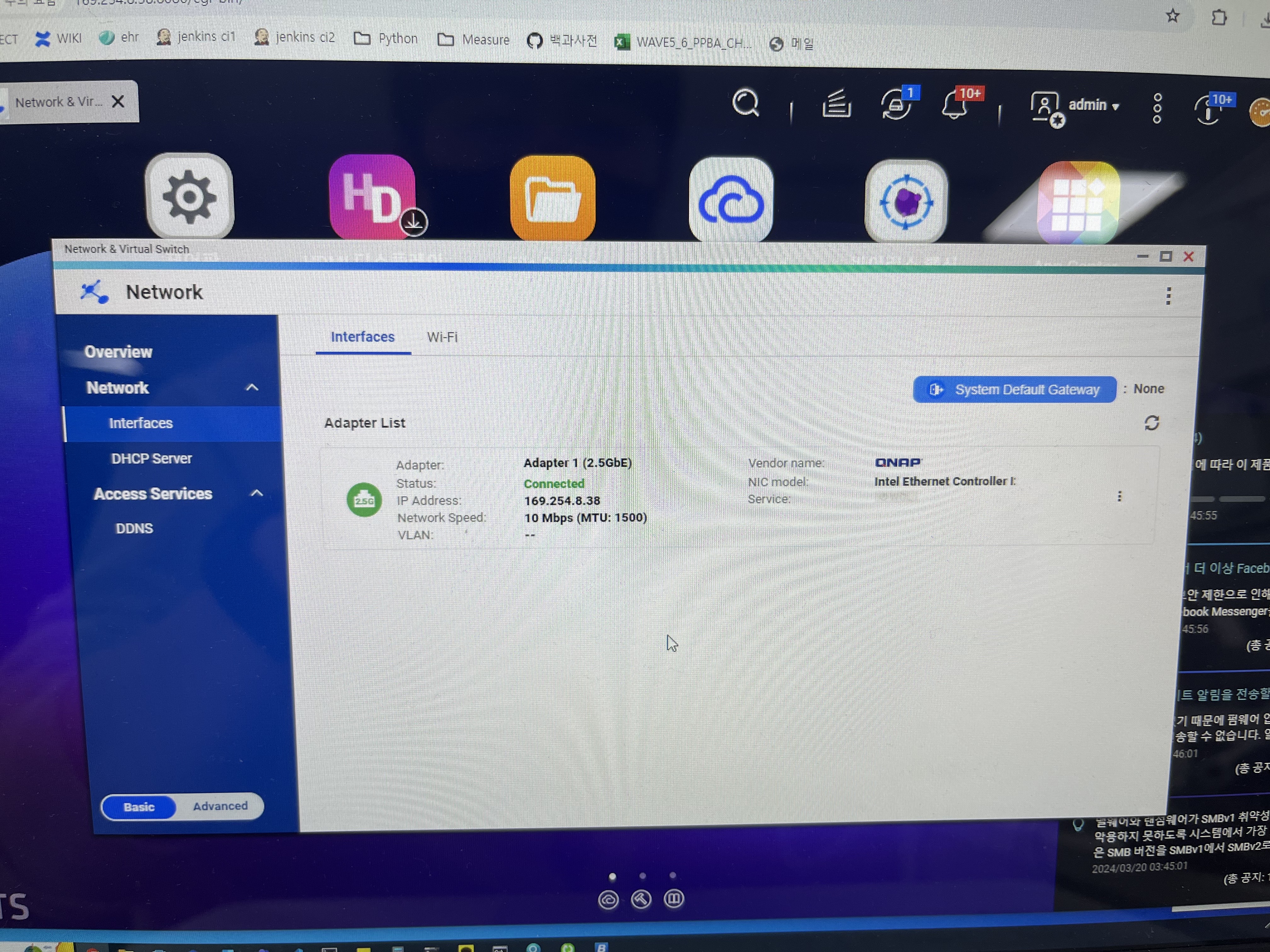 QNAP TS-462 네트워크 및 가상 스위치 작동안되는 증상 해결 방법