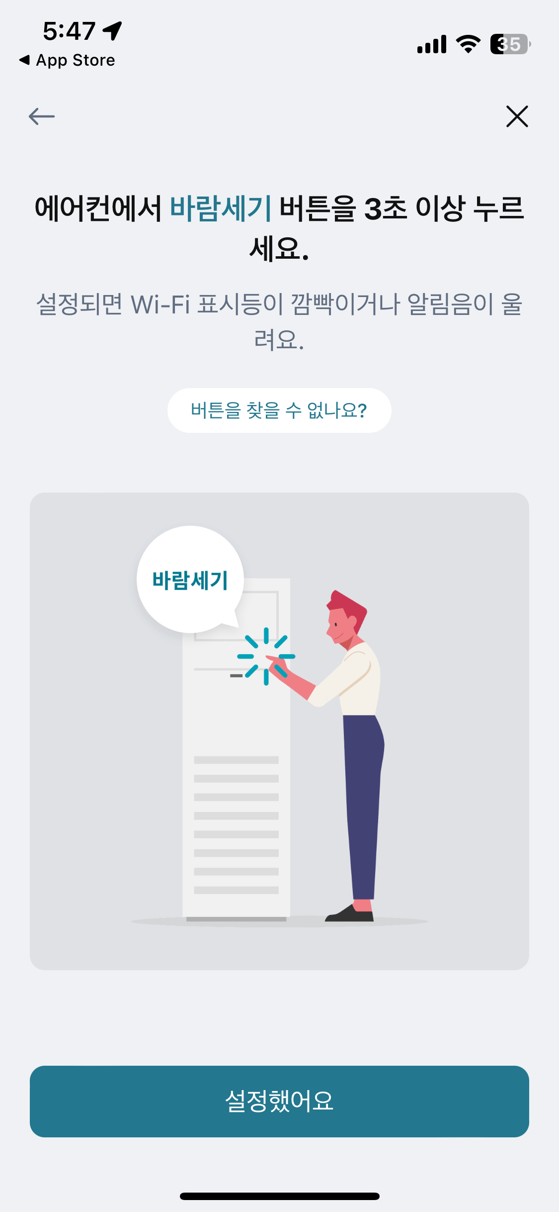 그러면 위와 같이 에어컨 키고 바람세기를 3초 이상 누르고 있으라고 한다.