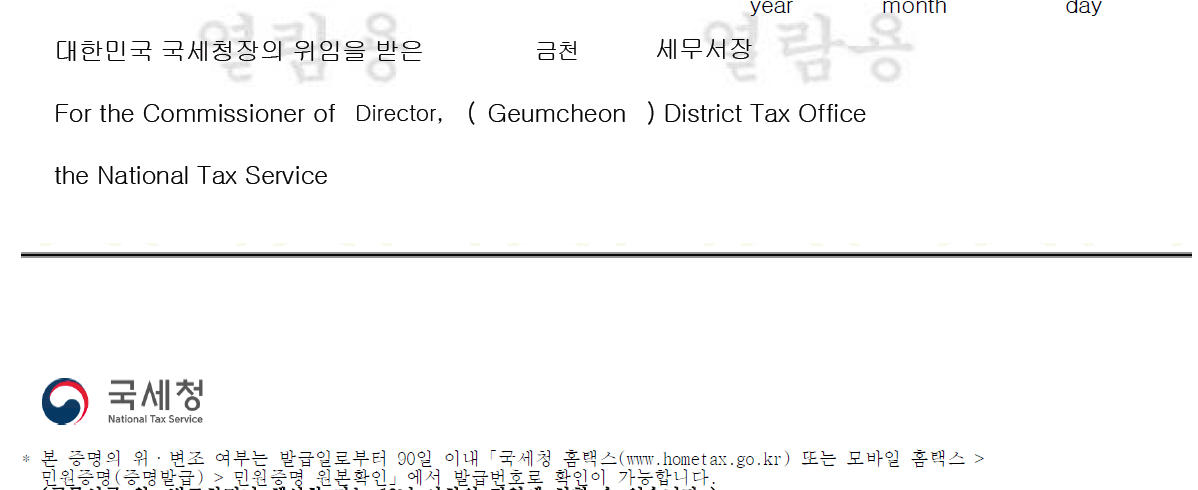 홈택스에 신청하고 하루 지나면 처리 완료로 뜨고 열람을 하면 처음본 이미지와 다르다.