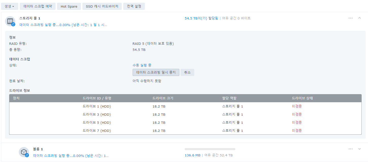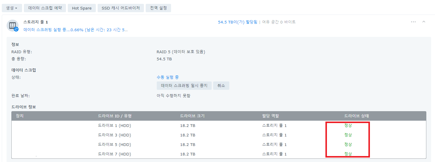 synology 가이드를 보면 호환되는 하드로 변경하라는건데...