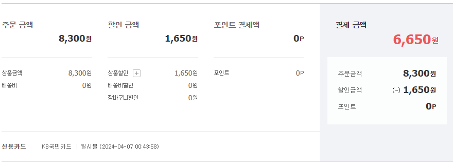할인 받아서 배송비 포함 6,650원에 구매 했다.