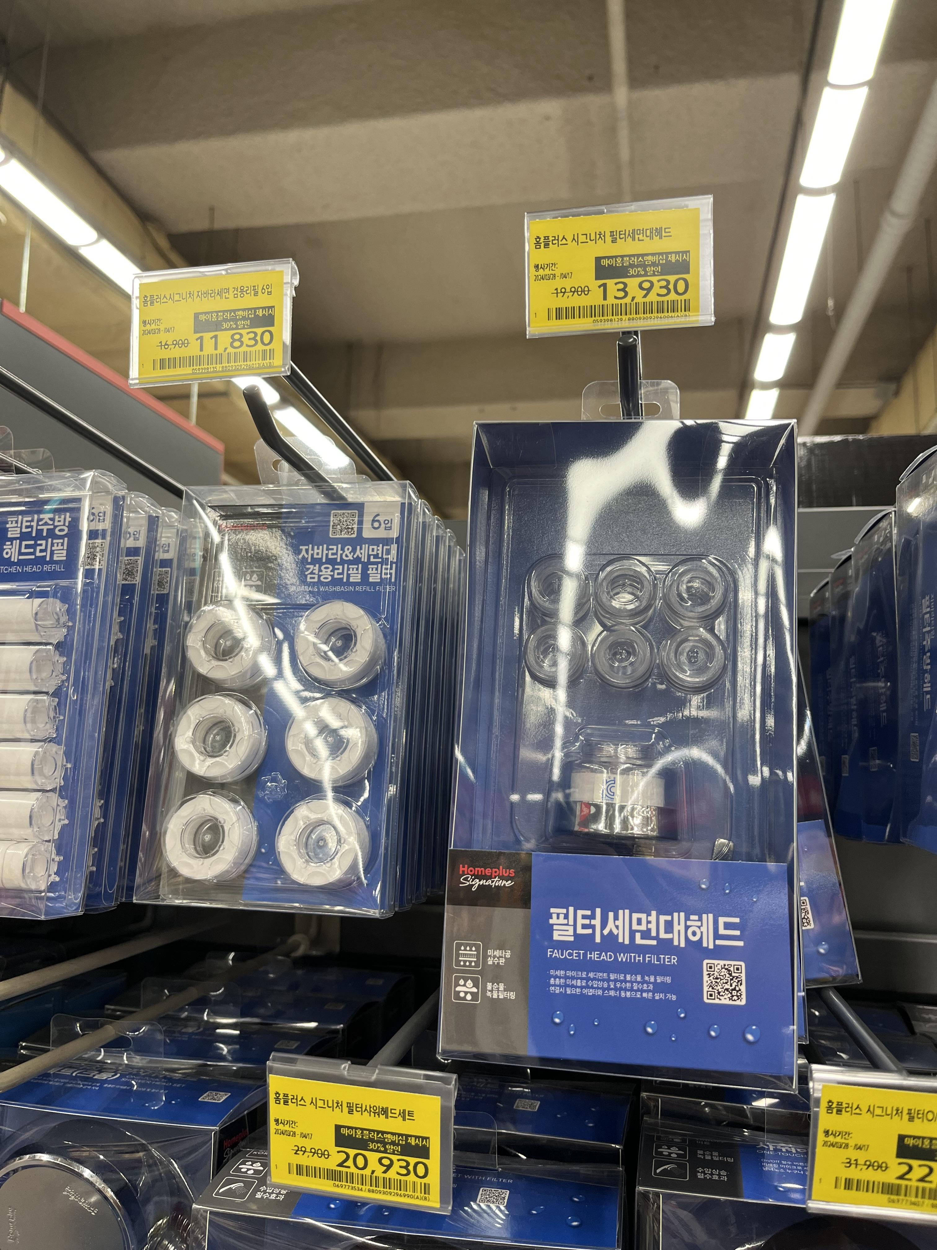 홈플러스 세면대 필터... 원래는 19,900원 인데 할인해서 13,930원이란다.. 다이소에서 5천원 가격을 본터라.. 못구매하겠다. 심지어 스페어 필터도 없다;;