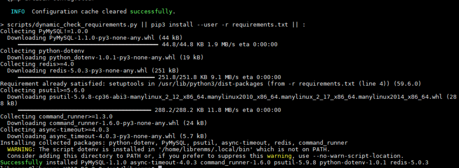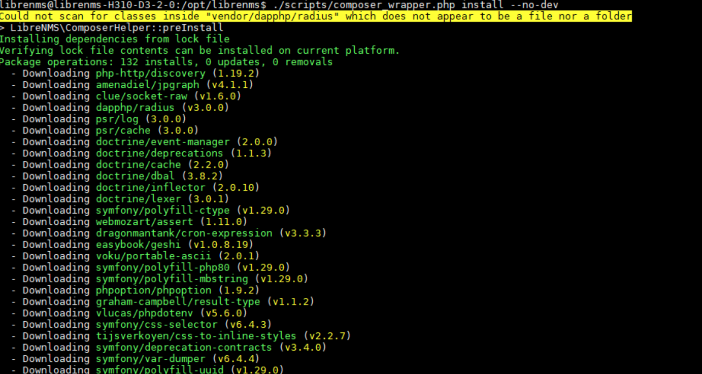# apt install acl curl composer fping git graphviz imagemagick mtr-tiny nmap php-{cli,curl,gd,json,mbstring,mysql,snmp,xml,zip} rrdtool snmp snmpd whois python3-{memcache,mysqldb,pip}