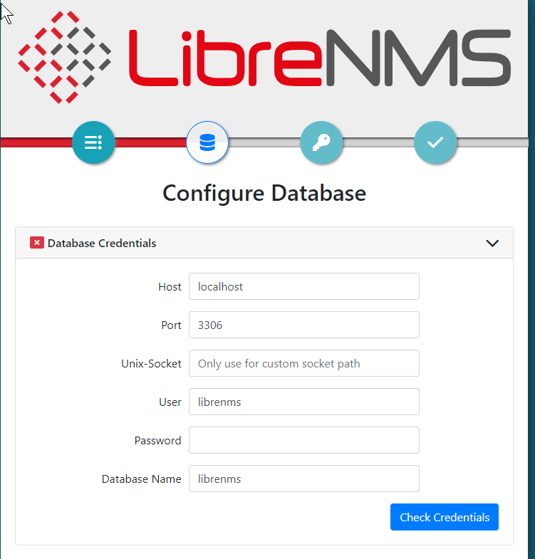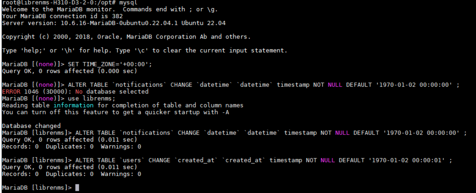 mysql> GRANT ALL on librenms.* to librenms@localhost identified by 'password12345';