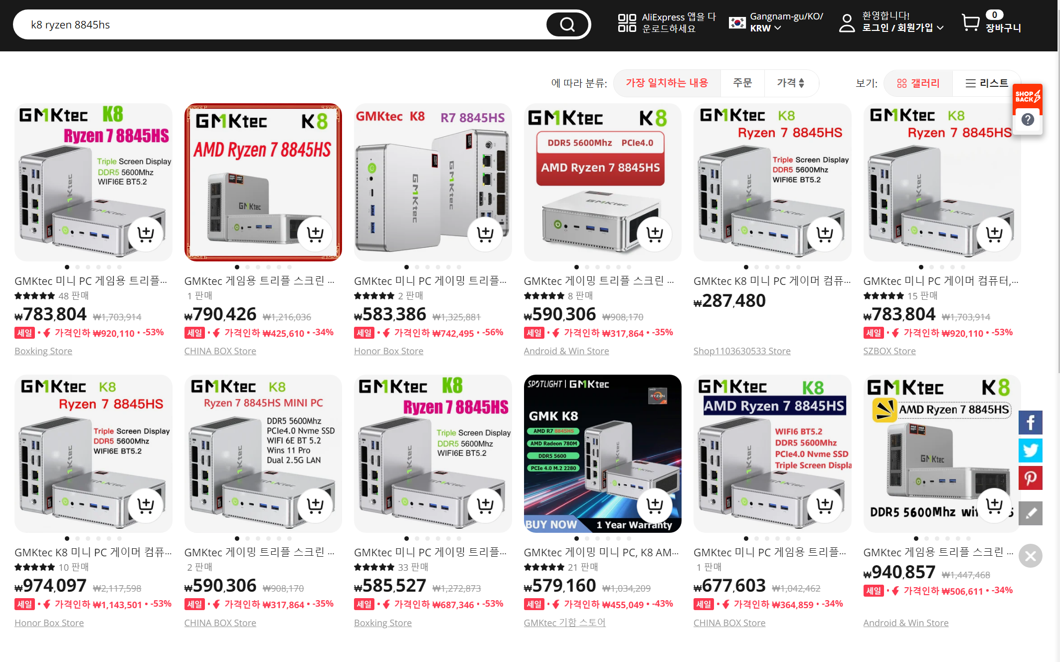 GMK K8 미니 PC 소형 데스크탑/Ryzen 7 8845HS/65W TDP/WIN11 PRO 구매 후기