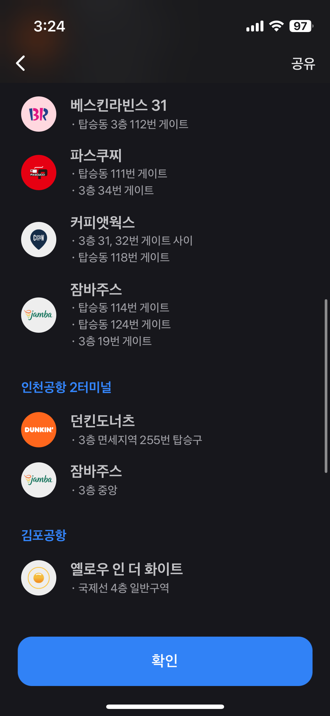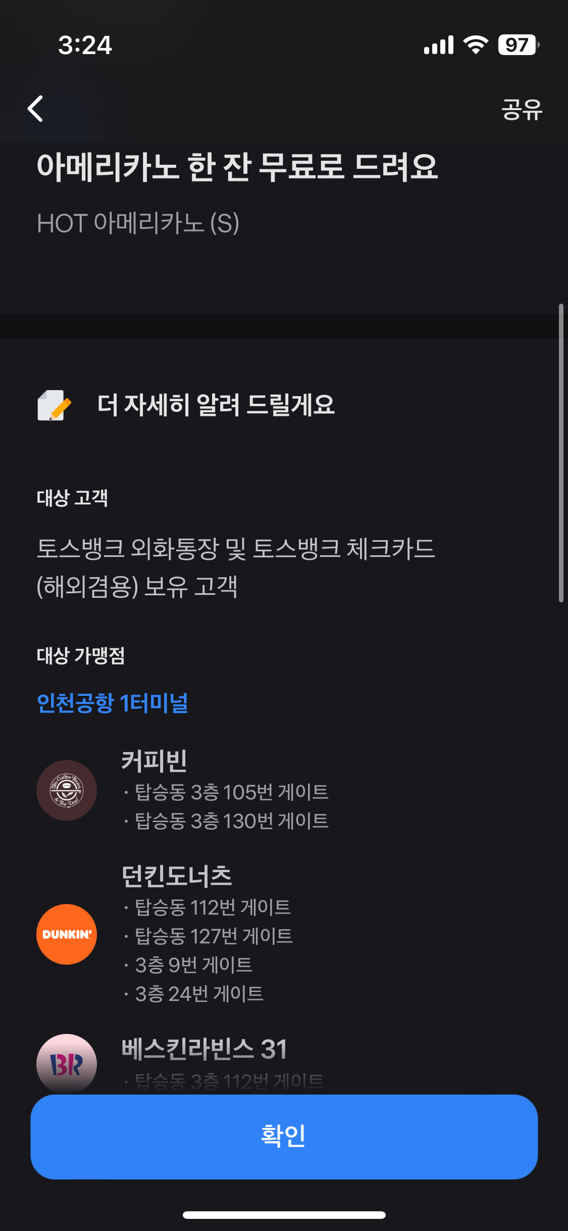 이런 이벤트를 하고 있다. 터미널 마다 제공 업체가 다르긴 하지만