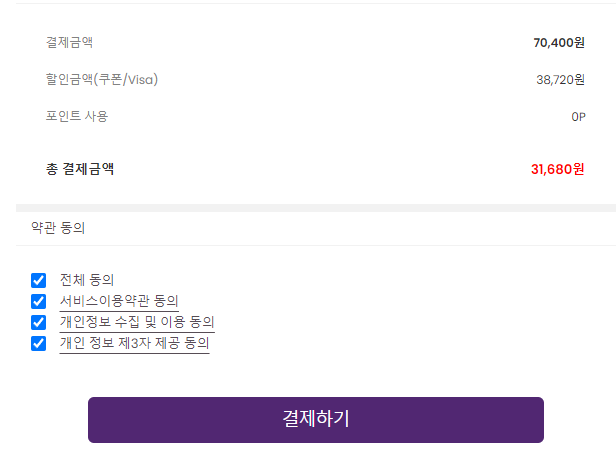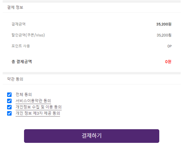 카드 정보 입력하니 0원으로 나온다. 22인치 이하 22인치 이상 모두다 0원이다.