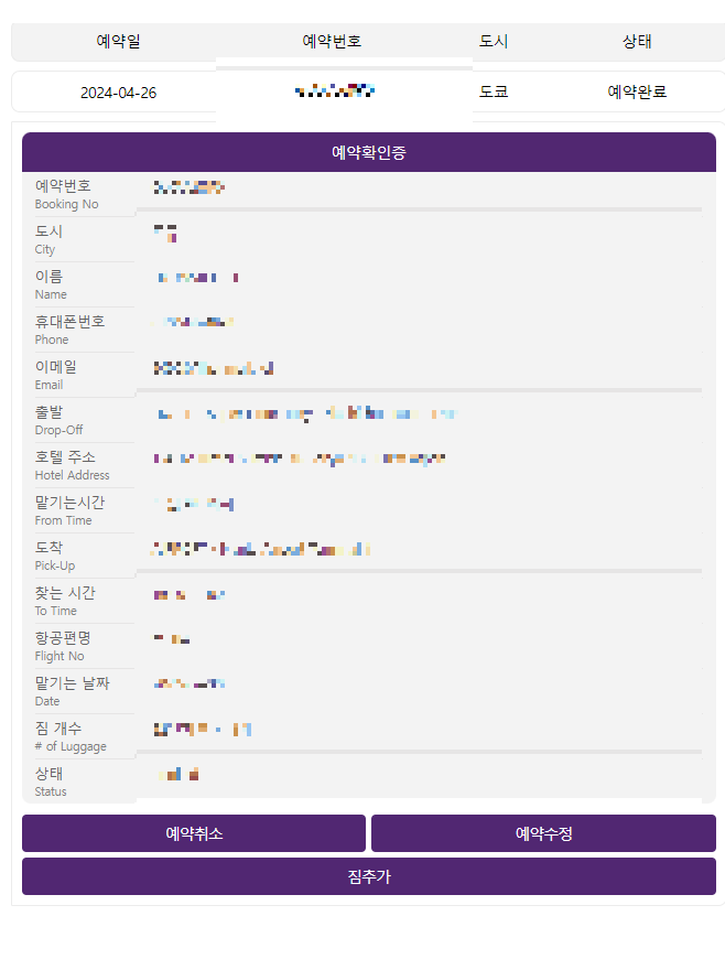 위에 프로세스가 나와 있으니 잘 보고 맨밑에 예약하기가 있다. 처음에 예약 어떻게 하지? 했는데 예약하기 위치가 너무 예매한 위치에 있다. 기본적인 정보를 입력을 하고