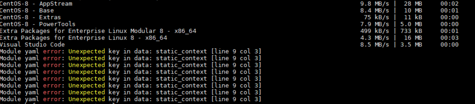 yum install error Module yaml error: Unexpected key in data: static_context [line 9 col 3]