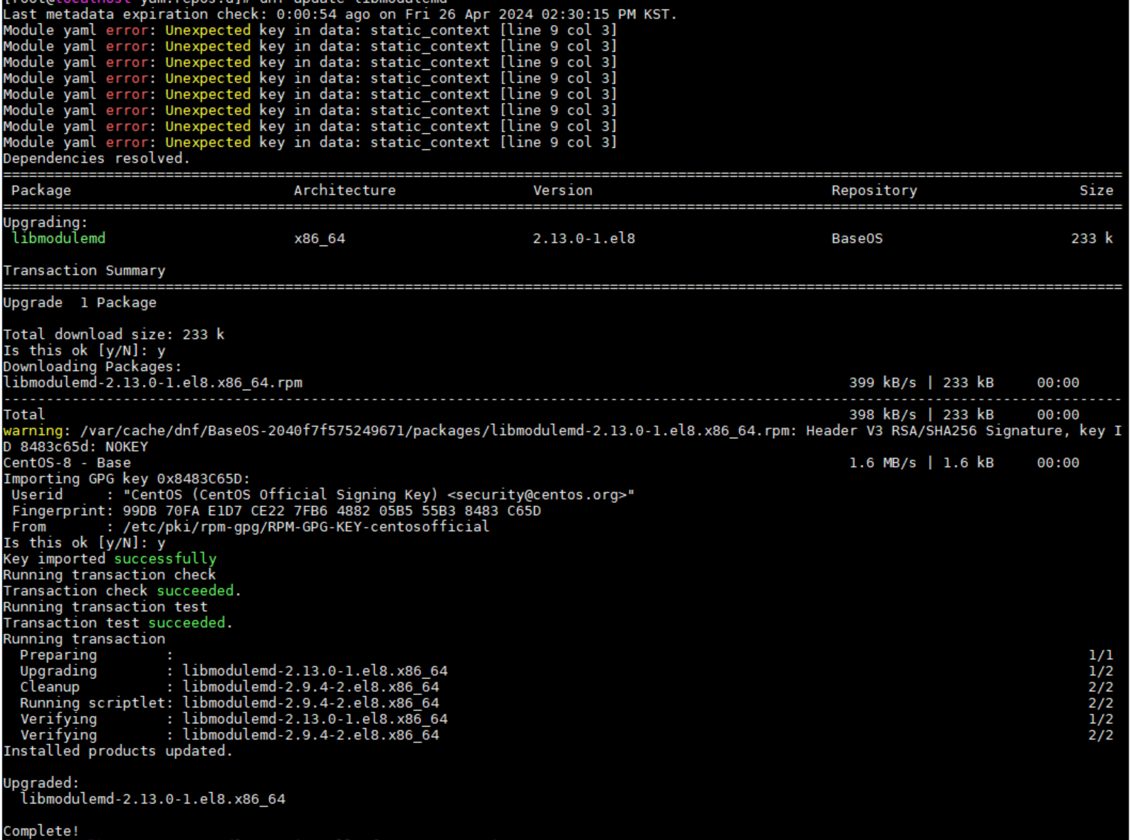 # dnf update libmodulemd