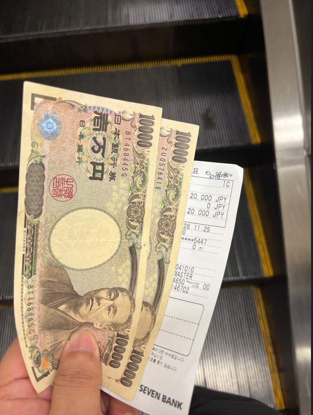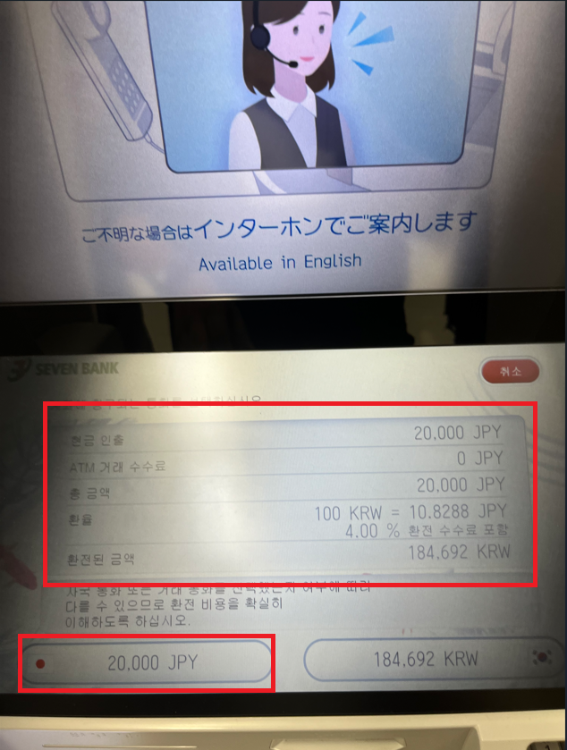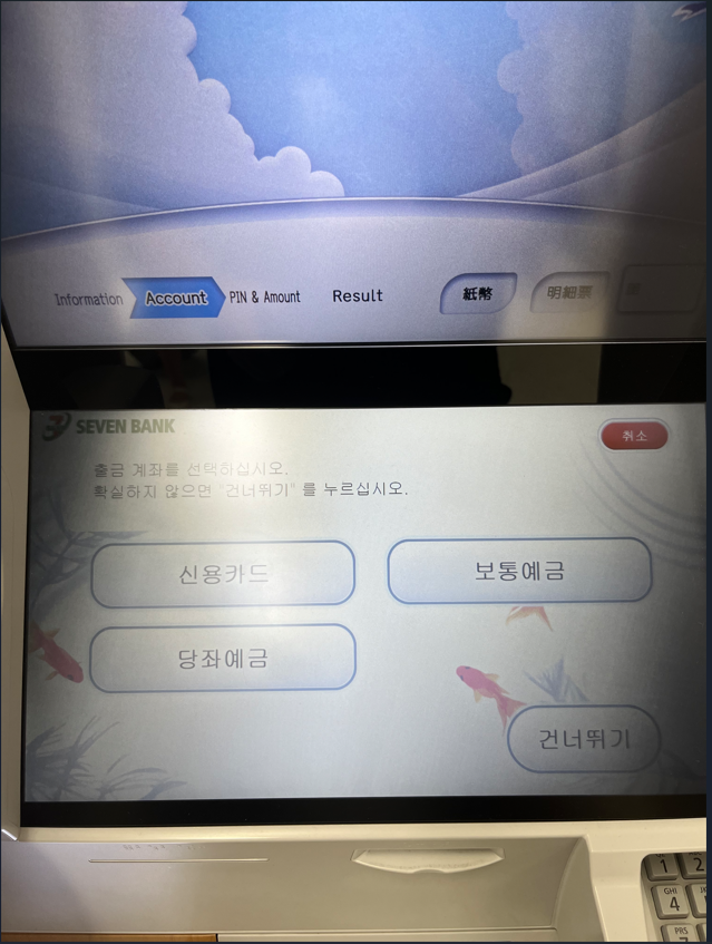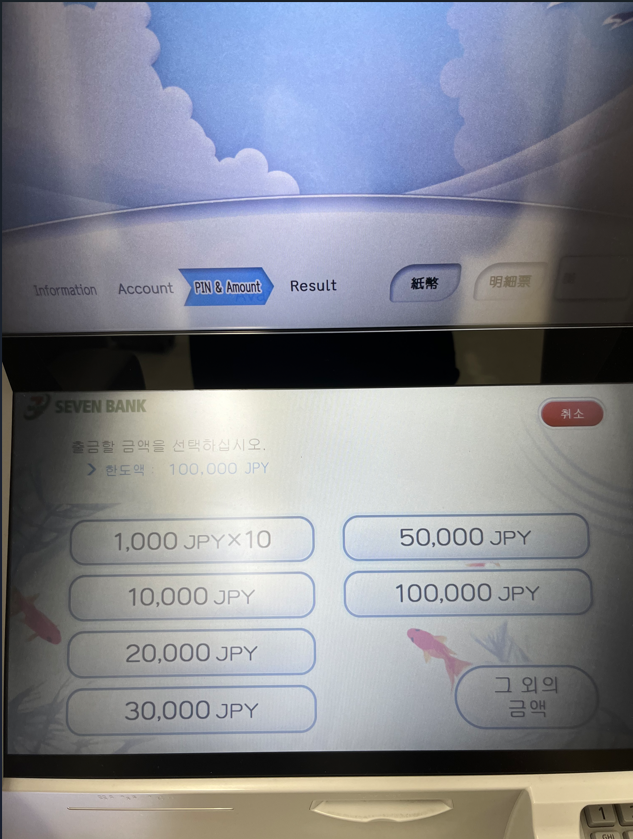 출금하고 싶은 금액 선택 난 2만엔 선택했다.
