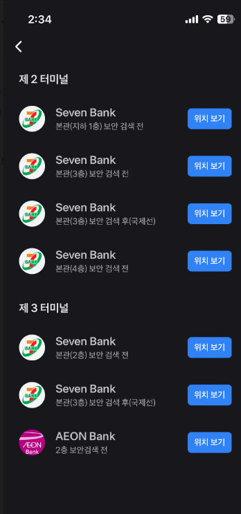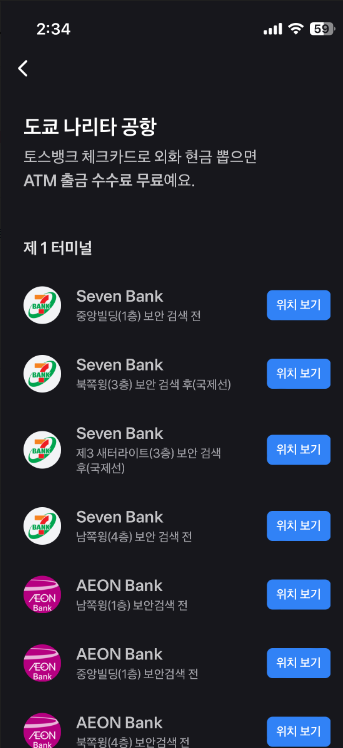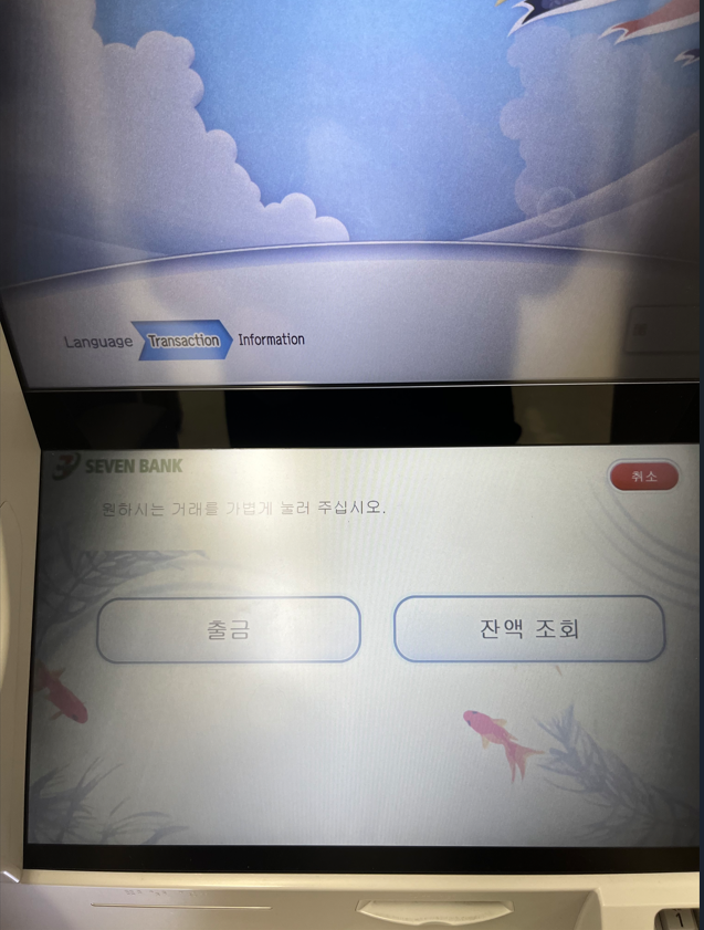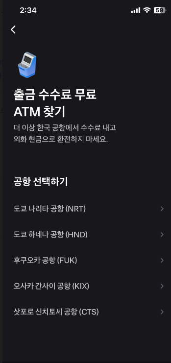 이벤트 페이지 보면 출금 수수료 무료 ATM 찾기가 있는데 공항에 여러곳에 세븐뱅크(세븐일레븐) 가 무료로 출금이 가능하다.