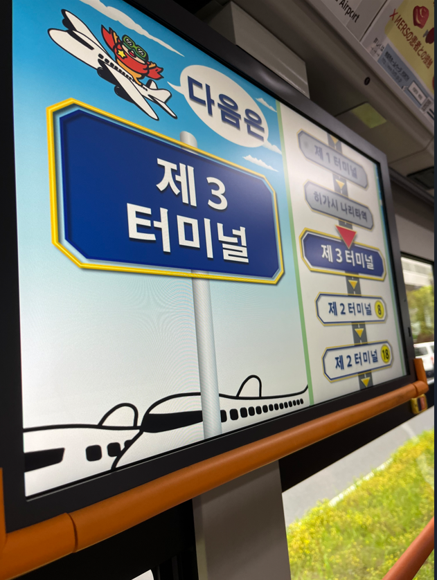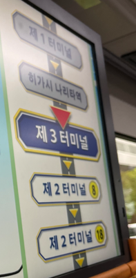 1터미널 기준으로 공항버스를 타고 내렸다면 출국 층이라서 1층으로 내려가면 셔틀 버스를 탈수 있다.