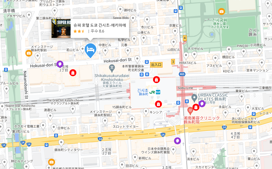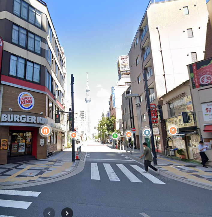 사진을 못찍어서 구글맵 이미지 대신인데 사거리에 보면 도쿄 스카이트리가 보인다. (숙소에 따라 숙소에서도 보인다. 난 안보였다 ㅠ.ㅠ)