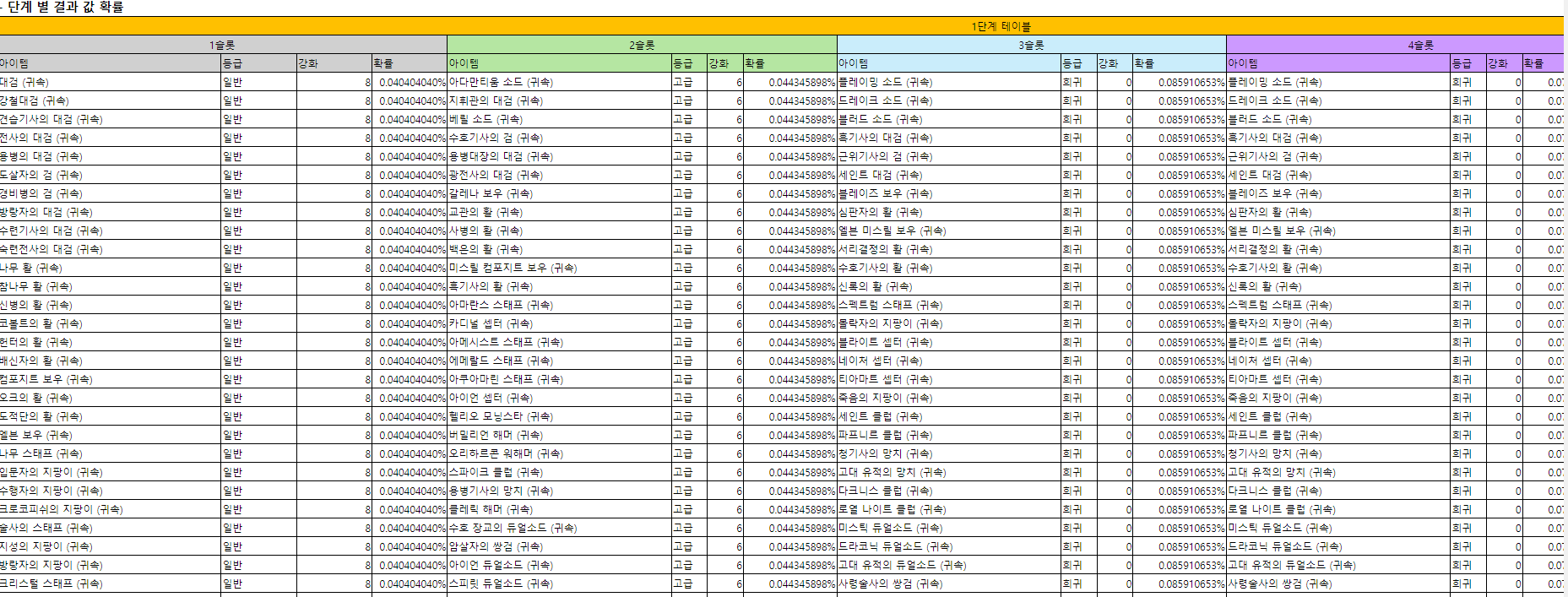 단계별로 어떤 아이템을 얻을 수 있는지 나와 있는 표다.