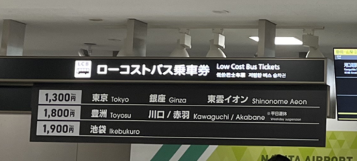 나리타 공항에서 도쿄 or 긴자 가는 저렴한 버스(1,300엔) 이용방법