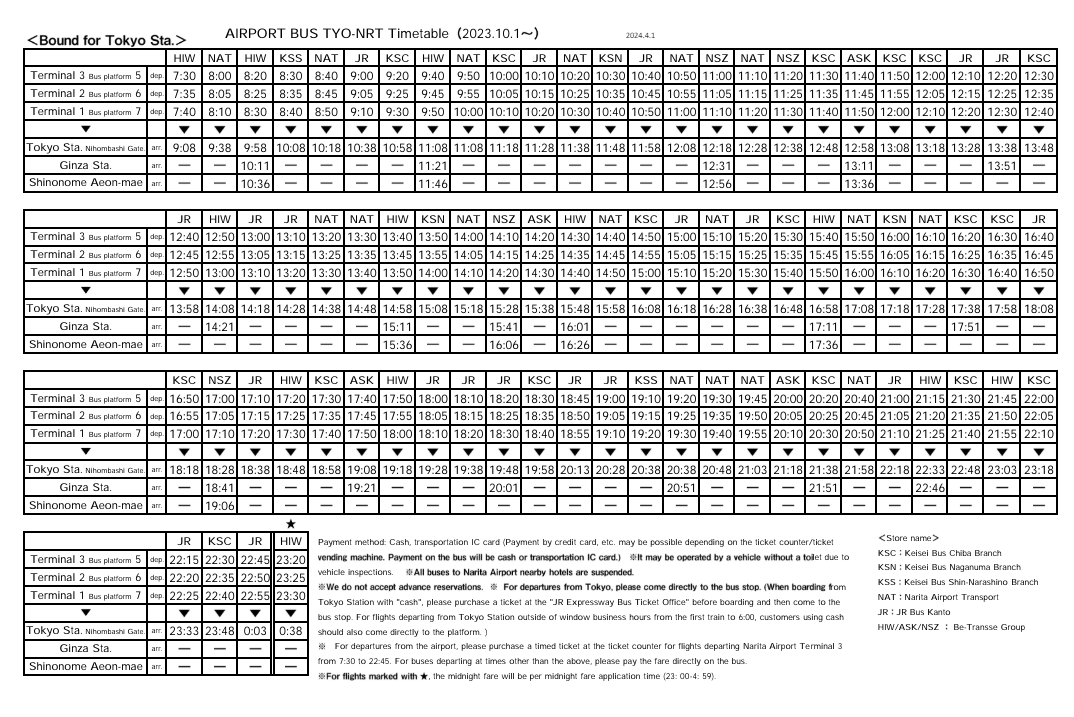 시간표 – 나리타공항행 | TYO-NRT[공식] 공항버스 도쿄·나리타
