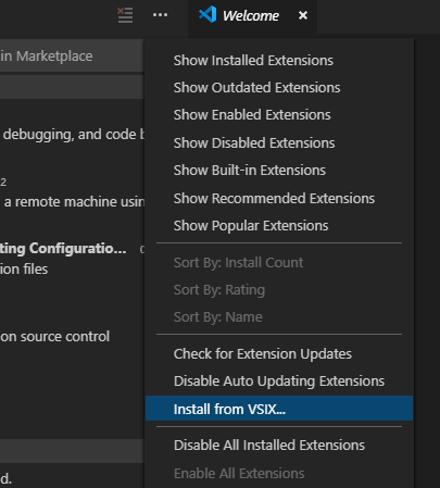아래쪽에 install from VSIX 가 있다 이걸 눌러서 다운 받은 파일을 선택하면 설치가 진행 된다.