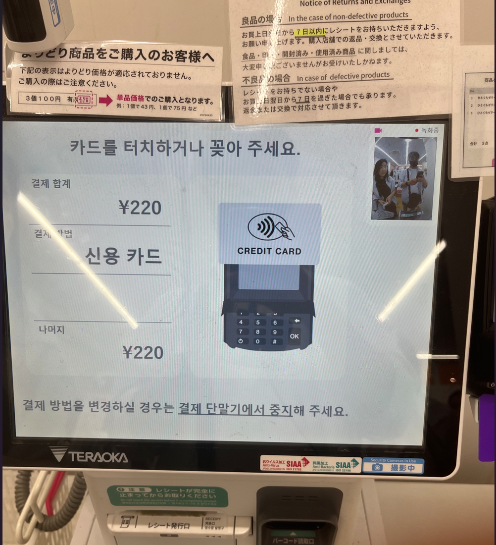 여기 특이점은 한국 처럼 셀프 계산기계가 있다.