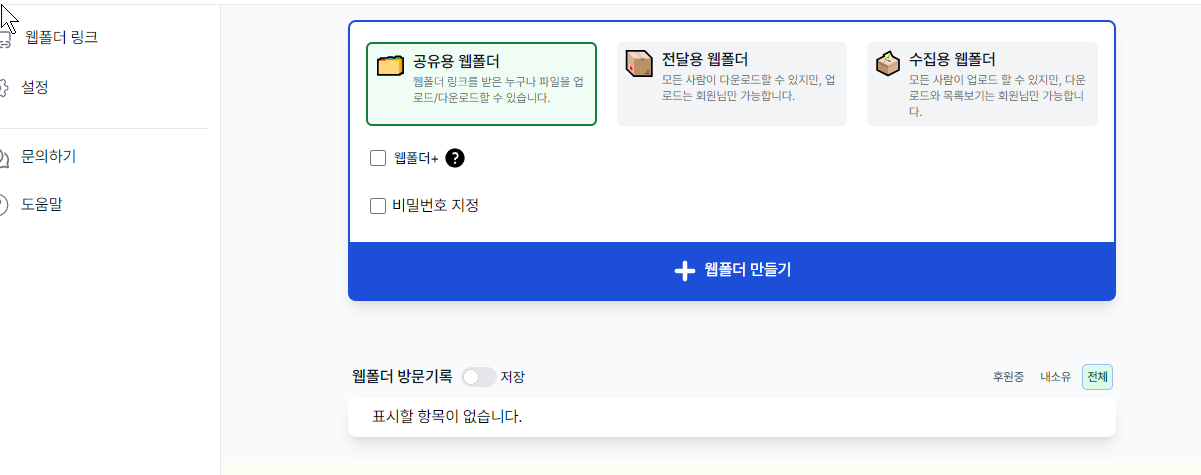가입을 하고 비밀번호 지정해서 웹폴더를 만들면 무제한으로 된다.
