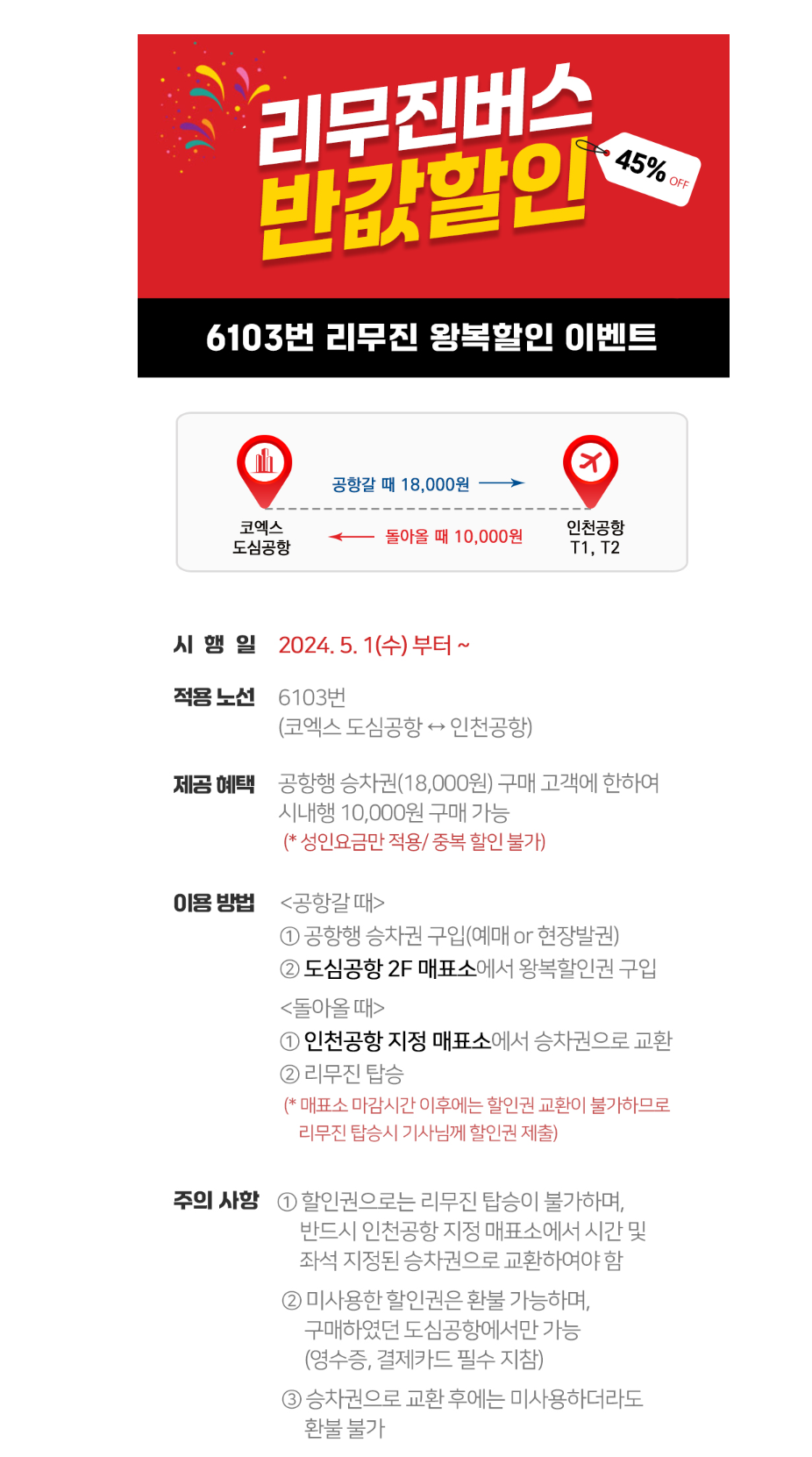 예전에는 공항 버스 무료 WIFI 가 있었는데.. 없다. 지하철, 버스도 요즘 있는데 공항버스 가격이 많이 올랐는데... 좀 아쉽다.