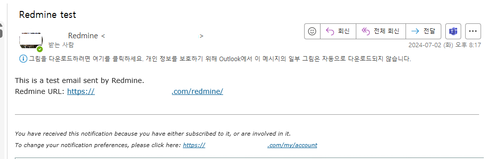 메일을 전송하는 과정에 오류가 발생했습니다. (getaddrinfo: Name or service not known) redmine smtp 설정 방법
