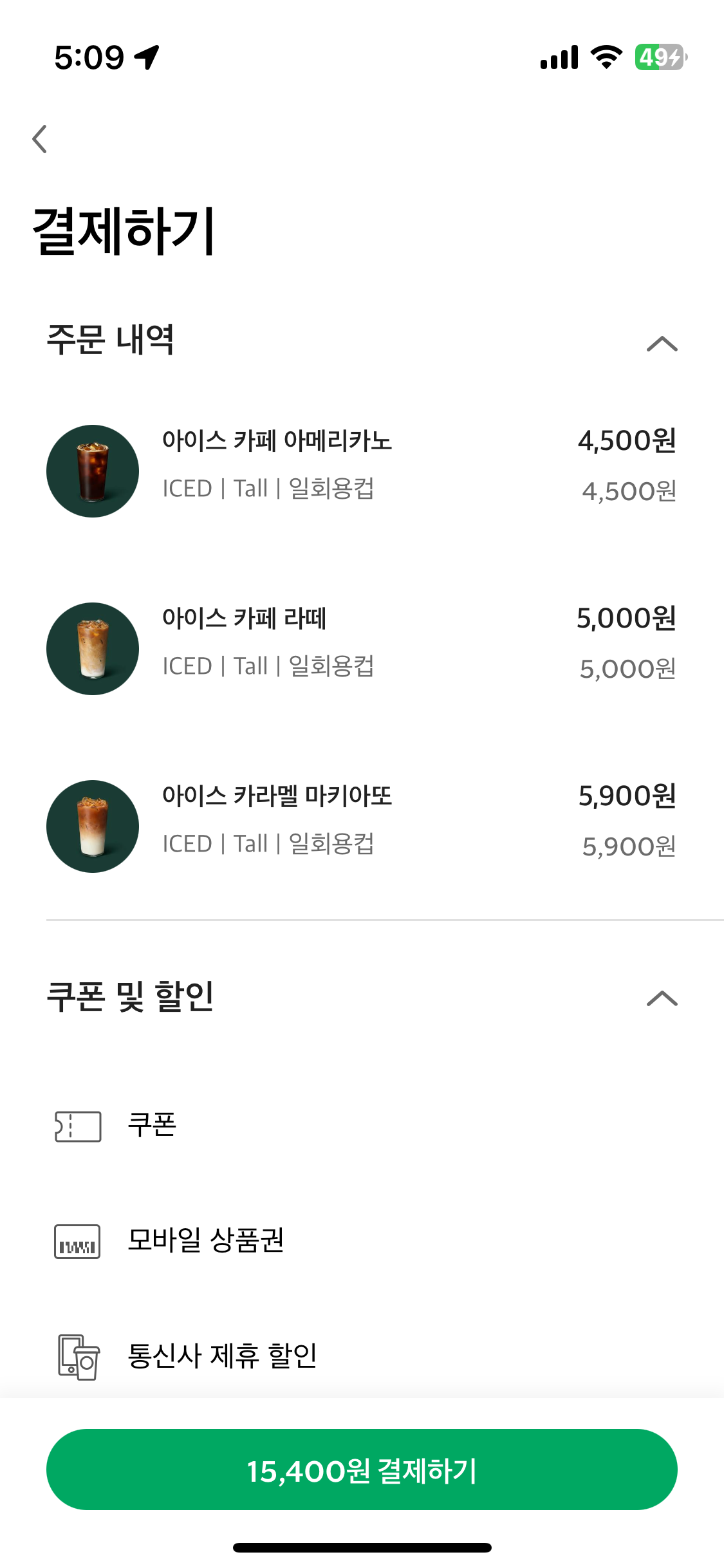 그리고 주문당 4잔이 최대이다. 뭐 이건 여러번 해도 될것 같긴하고.. 마지막으로 톨사이즈만 된다. 사이즈 업하려면 할인이 제외된다.