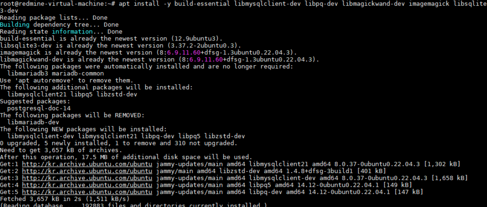 # apt install -y build-essential libmysqlclient-dev libpq-dev libmagickwand-dev imagemagick libsqlite3-dev