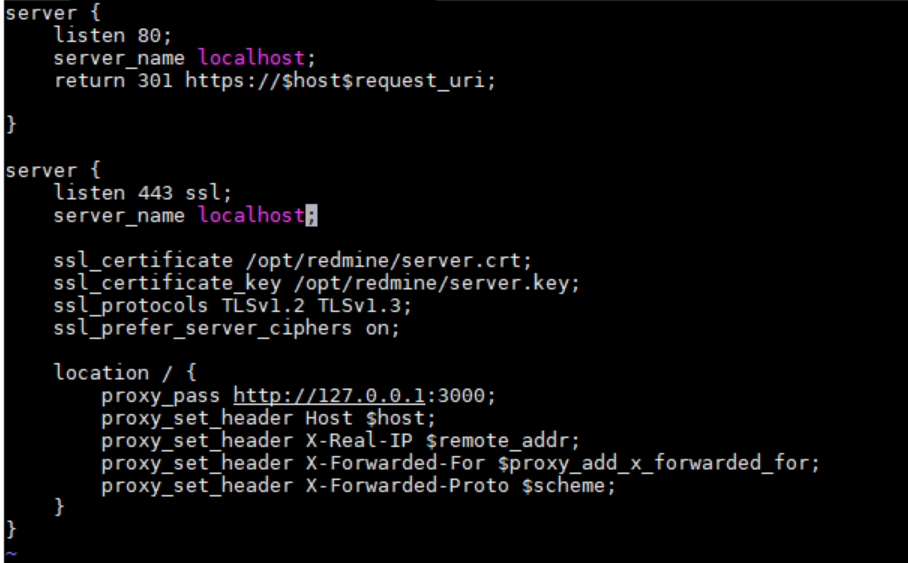 # ln -s /etc/nginx/sites-available/redmine /etc/nginx/sites-enabled/redmine