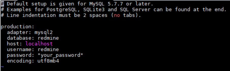 CREATE USER 'redmine'@'localhost' IDENTIFIED BY 'your_password';