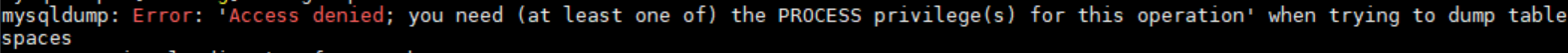 mysqldump: Error: 'Access denied; you need (at least one of) the PROCESS privilege(s) for this operation' when trying to dump tablespaces