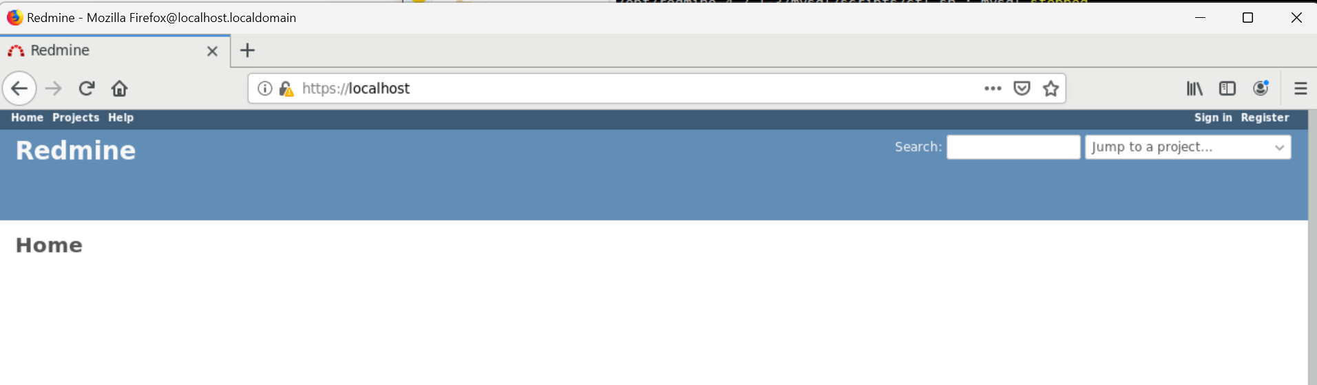 https://localhost/redmine 으로 접속을 해야 한다.