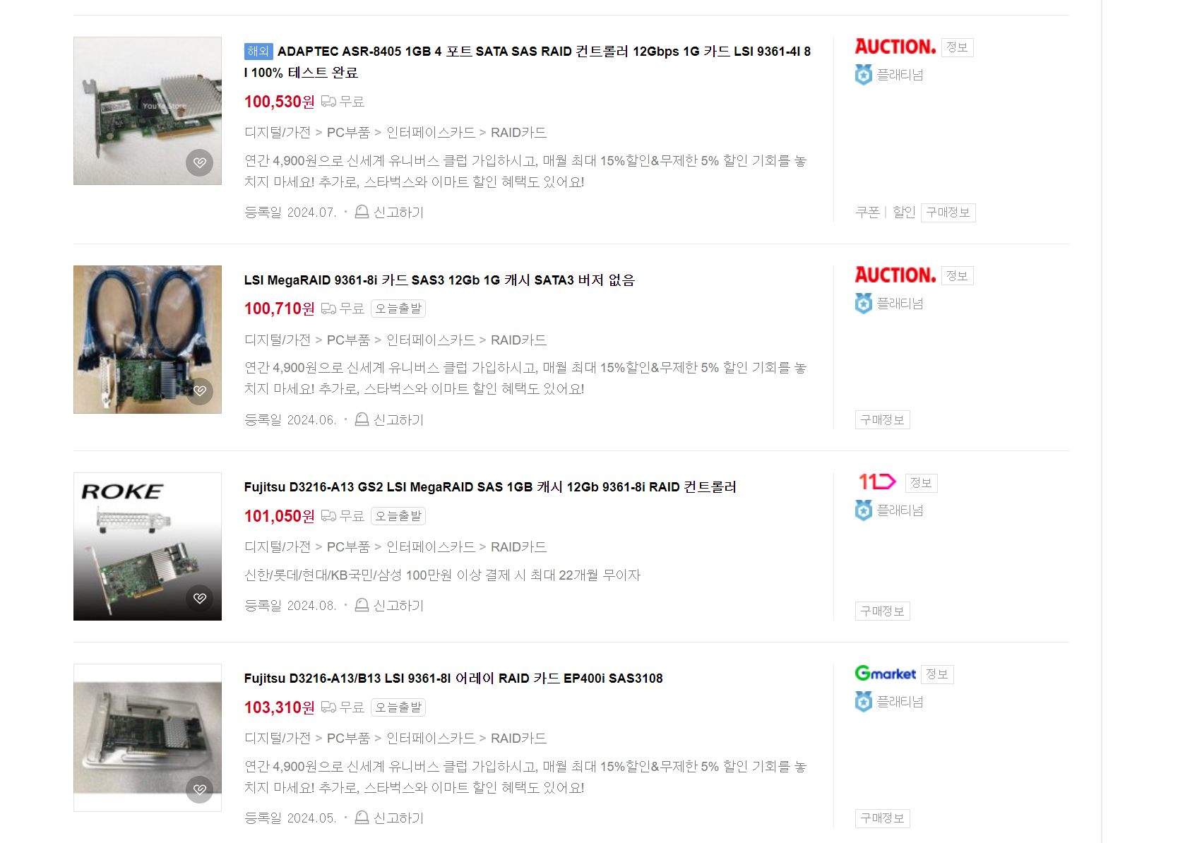 저렴하게 판다. 알리는 저장장치나 저런 기계종류는 사는게 아니라고 했고 더더욱 레이드 카드 같은 안정성이 필요한 장비는.. 위험한데... 혹시나 가격이 저렴하니 구매 해봤다.