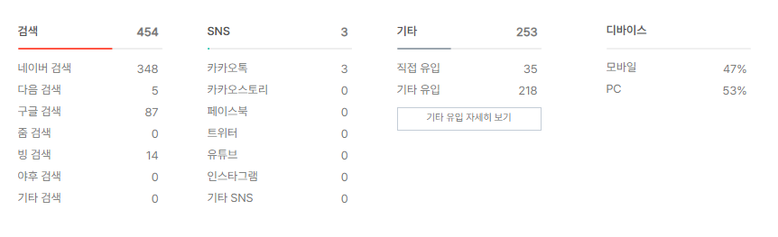 뭐 다음으로 유입은 거의 없어서 티도 안나긴 했지만 그래도 검색이 안되니 마음이 아프다.
