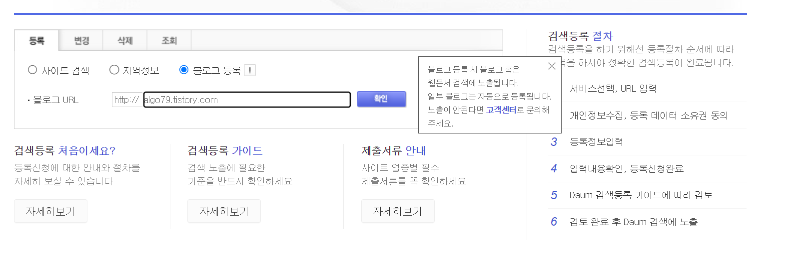 블로그 등록이 아닌 사이트 검색으로 변경해서 등록하자.