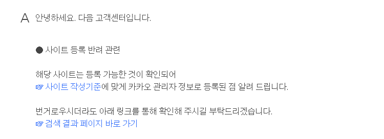 그리고 4시 40분경에 추가 답변이 왔다. 왜 저품질이 되었는지 이유는 모르겠으나 정상등록이 되었다.