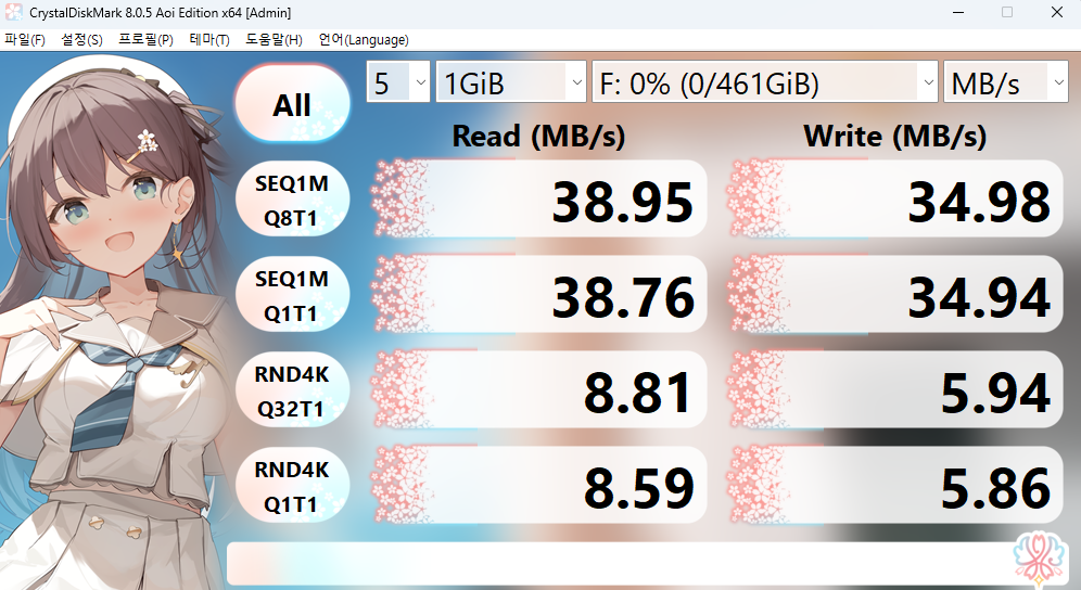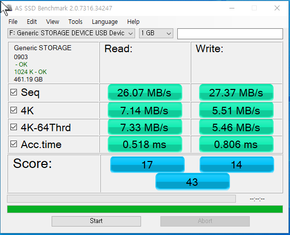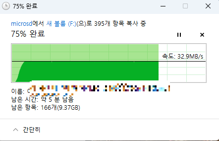 다른 PC 에 연결을 해봤는데 조금 속도가 올라갔지만 동일하다. 뭐지..??? USB 3.0 포트에 잘 연결했는데..