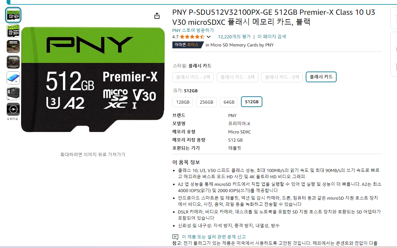 PNY P-SDU512V32100PX-GE 512GB Premier-X Class 10 U3 V30 microSDXC Flash Memory Card, Black
