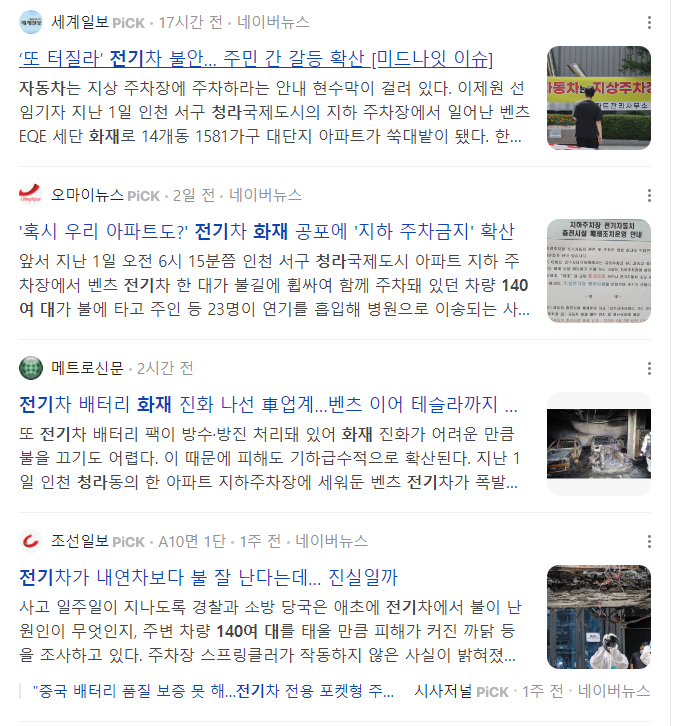 뭐 전기차동차 화재는 이번이 처음이 아니긴 하지만 화재로 인해 여러대의 차가 같이 불이나서 더 커진 사건이다.