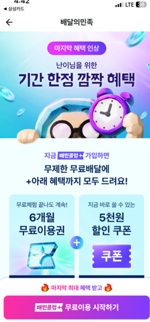 배달의 민족 배민 클럽 무료 가입 이벤트