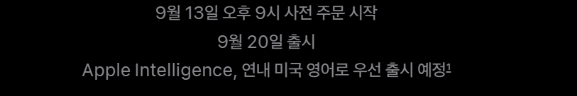 뭐 대충 이정도. 특이점은 가격이 동결, 카메라 버튼, 애플 AI(인텔리전스) 탑제 이다! 인텔리전스는 내년 SW업데이트로 제공된다.
