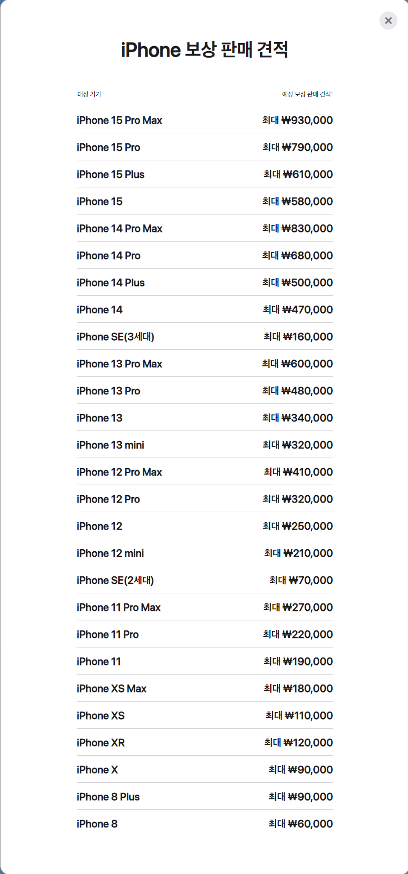 애플 공식 사이트에서 구매시 보상판매 가능하다.