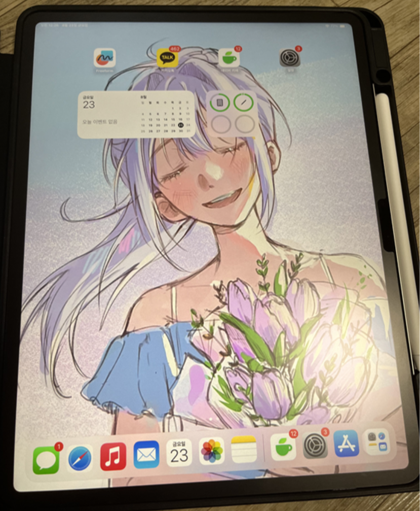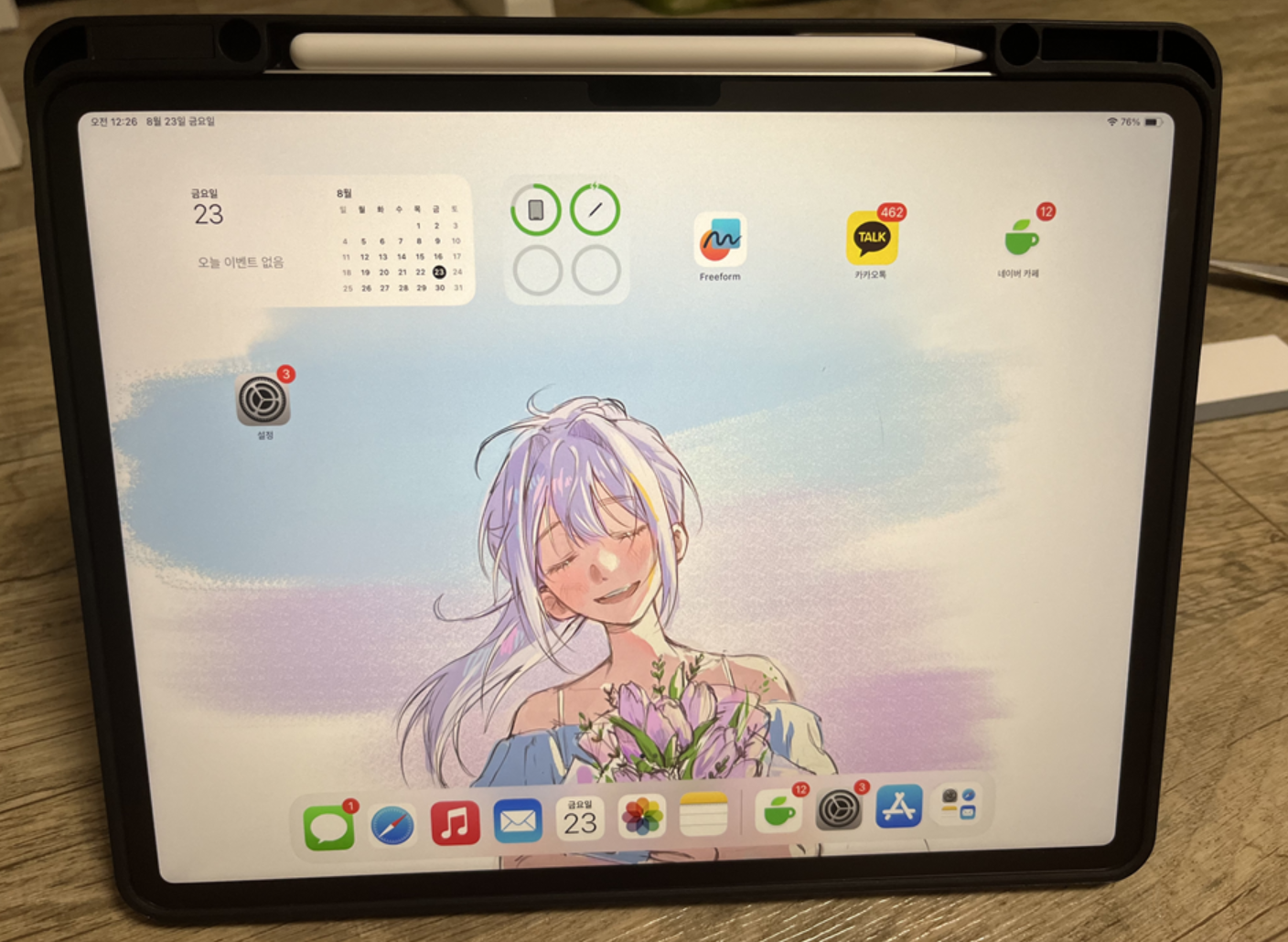 커버가 달려 있고 애플펜슬 수납도 가능하다. 생각보다 무겁다. 아이패드도 무거운데.. 더 무거워졌다