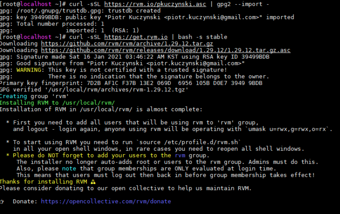 # curl -sSL https://rvm.io/pkuczynski.asc | gpg2 --import -