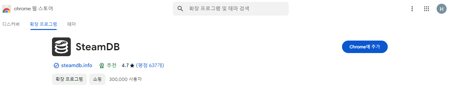 바로 추가는 안되고 크롬에 steamDB 플러그인을 설치를 해야 한다.
