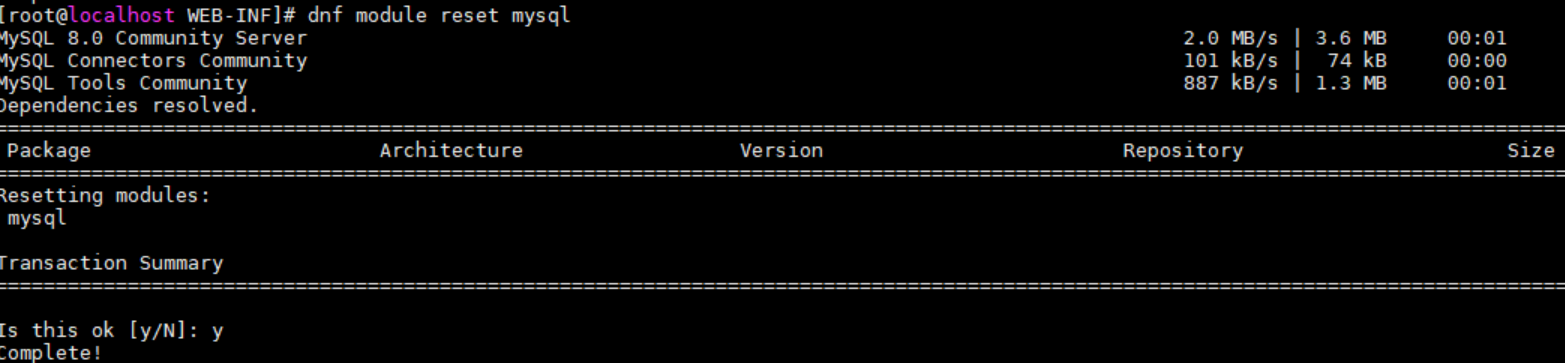 # dnf module reset mysql